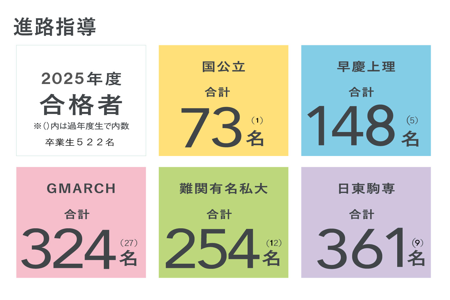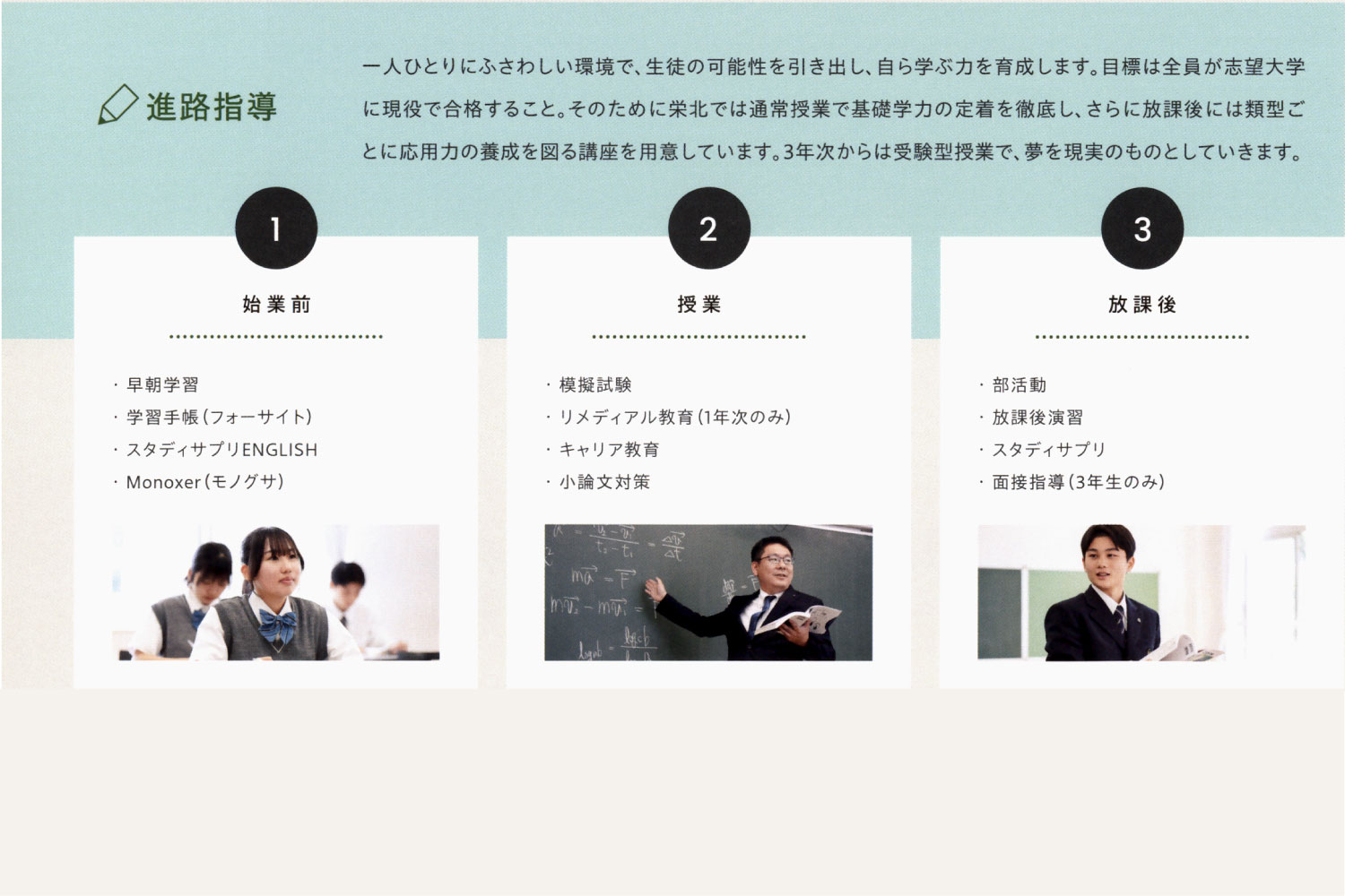以下の5つの項目をクリックすると学校完結型の進路指導内容の紹介ページを表示します。