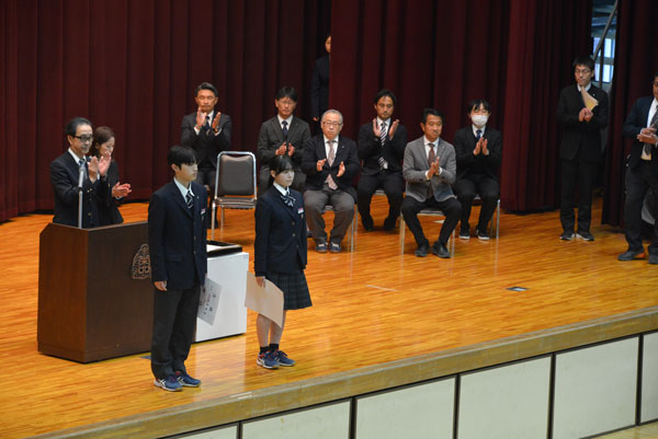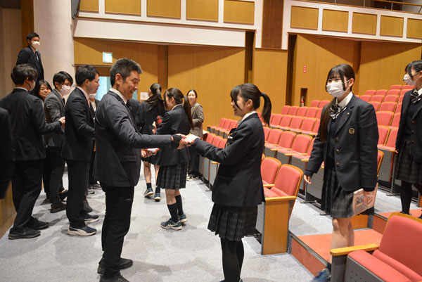 また、奨学金の授与式が1年生の生徒・保護者同席にて行われました。