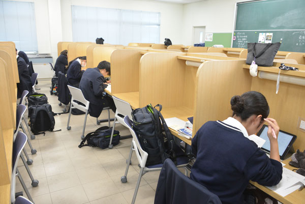 在校生は、来週火曜日からの期末試験に向けた試験勉強に集中しています。