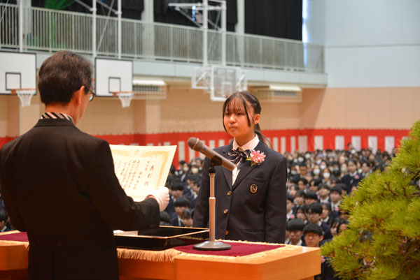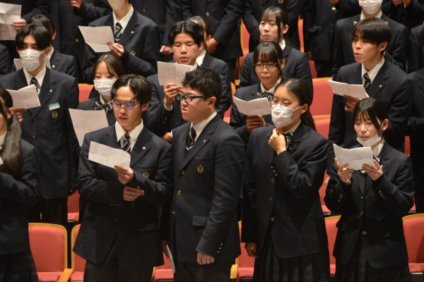第21回卒業証書授与式は3月8日に実施されました。1年次からコロナ禍でスタートした第21期生は、オンライン授業をはじめ、イベントの中止や延期などさまざまな困難を乗り越え、日々の努力と工夫でこの3年間を乗り越えてきました。4月からはそれぞれが新たな環境で、また一歩大きく踏み出すこととなります。この3年間で、学んだことはもちろん、これからも「I CAN CHANGE!」を忘れずに、さらに一歩上の自分へ挑戦し続けてほしいと思います。「EVERYBODY CAN CHANGE!」誰もが変わることができます。「夢を叶えてください。」