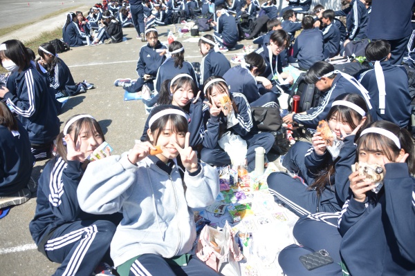 本日は、生徒主体のスポーツフェスティバルが実施されました。天候にも恵まれ、生徒と教員が一体となって楽しみました。生徒会・実行委員たちにより、事前準備から当日までの企画・運営。新たにSKカーリングや借り人競争など大変盛り上がる種目が追加されました。おなじみの絆リレーも生徒と教員が全力で走り抜け、応援する生徒も一体となって絆を深めることができました。写真は、お昼休みの一風景です。競技写真は写真部の皆様がたくさん撮影してくれているので、後日の公開を楽しみに待ちましょう。
