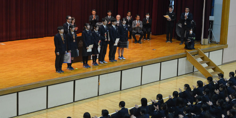本日、第2学期終業式が実施されました。2学期は、文化部、運動部で多くの生徒が表彰を受けました。