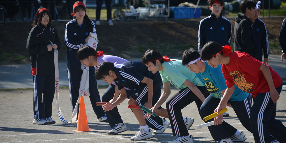桜の開花宣言とともに、6月並みの暖かさの中、この学年末にクラス・学年の団結を深めるためにレクリエーション企画、スポーツフェスティバルを上尾運動公園陸上競技場で開催。とにかく走る。動く。体育祭とは違います。ただのクイズ大会や綱引き、玉入れとは異なります。名称も独特な「Ultimate Brain」、「Catch the Devil」、「Ring in Judgement」、「Eternal ∞ Jump」、「Power Force」、「Magnetic Link」おそらく、聞いても何のことだか想像もつかないと思いますが、とにかく、初めての企画です。みんな全力で笑顔、だれもが相手のことを気遣う全員参加のまさにスポーツフェスティバルとなりました。青空に向かって「I Can Change !」