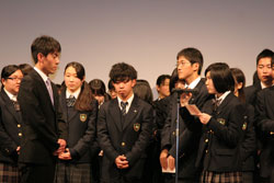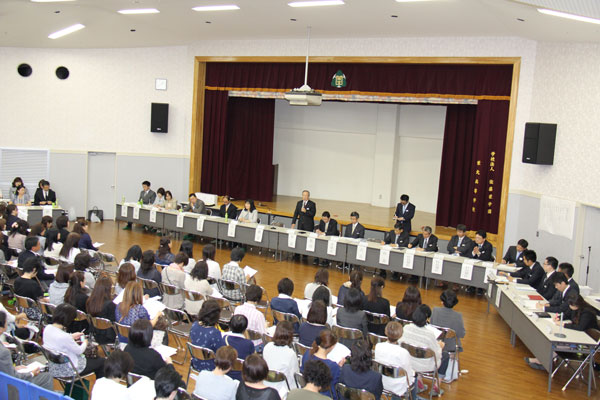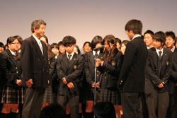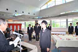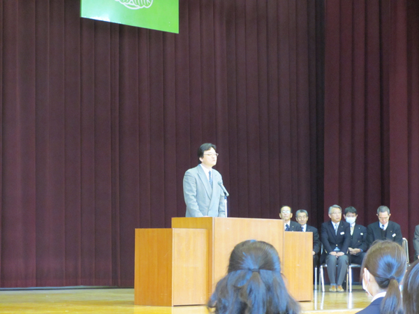 お話をいただきました。また、地元の伊奈町立南中学校、小針、伊奈中学校を代表して、伊奈南中学校の校長先生よりお祝いの言葉をいただきました。
