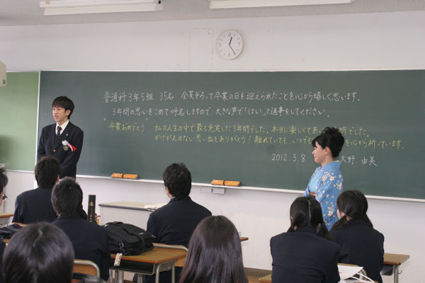 パレスホテル大宮にて盛大に実施されました。写真は、卒業式前の最後のホームルームの様子、卒業式、謝恩会の様子と